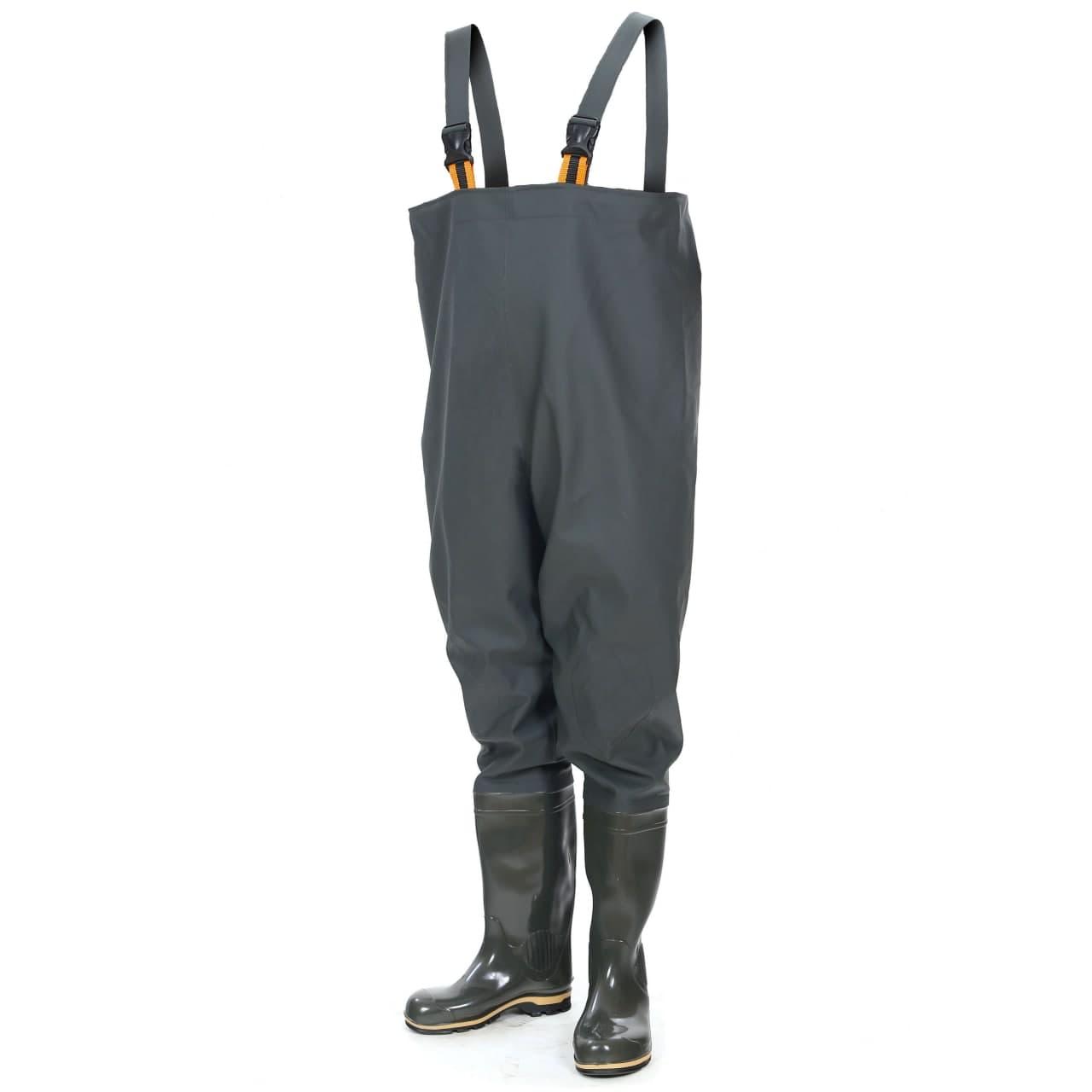 Верхня частина рибальського напівкомбінезона виконана з тканини з покриттям ПВХ (винитол), яка приварюється до базового чоботу струмом високої частоти. Також при виготовленні застосовується технологія 2-го шва, яка надає взуття гарантовану герметичність, зносостійкість, міцність.