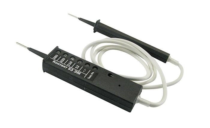 Покажчик Контакт53ЕМ виконаний у вигляді двох щупів основного та допоміжного. Щупи з'єднані між собою ізольованим дротом. На основному щупі розташовані 5 індикаторних елементів (світлодіодів) червоного кольору свічення та штирьовий електрод “Рh”. Чотири світлодіоди позначені цифрами «12», «110», «220», і «380», служать для індикації змінної і постійної напруги. Рід напруги визначається за допомогою світлодіода, позначеного знаком "-". Світлодіод "Test/Ph" служить для індикації режимів "продзвонювання ланцюга" та "визначення фази". Штирьовий електрод "Рh" використовується для роботи в режимі "визначення фази". Допоміжний щуп Контакт53ЕМ має елементи кріплення для його фіксації на основному щупі у транспортному положенні. Корпуси щупів виконані з кольорового удароміцного полістиролу та забезпечені упорами висотою З мм з боку металевих електродів.